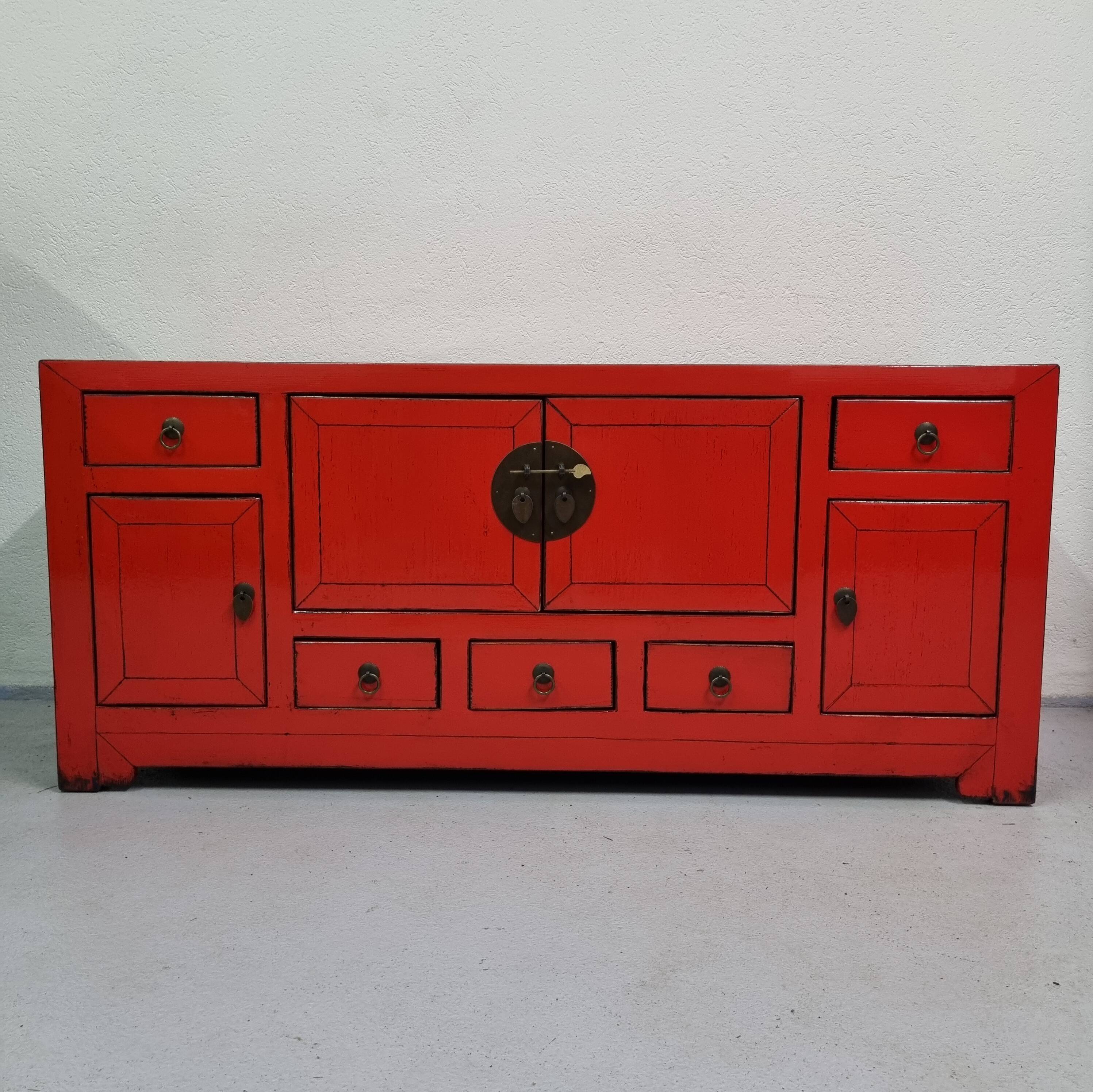 Chinesische Kommode, rot alt gemacht