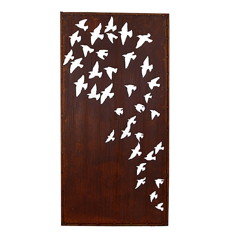 Paravent Vogelschwarm aus Rostmetall, H 200cm