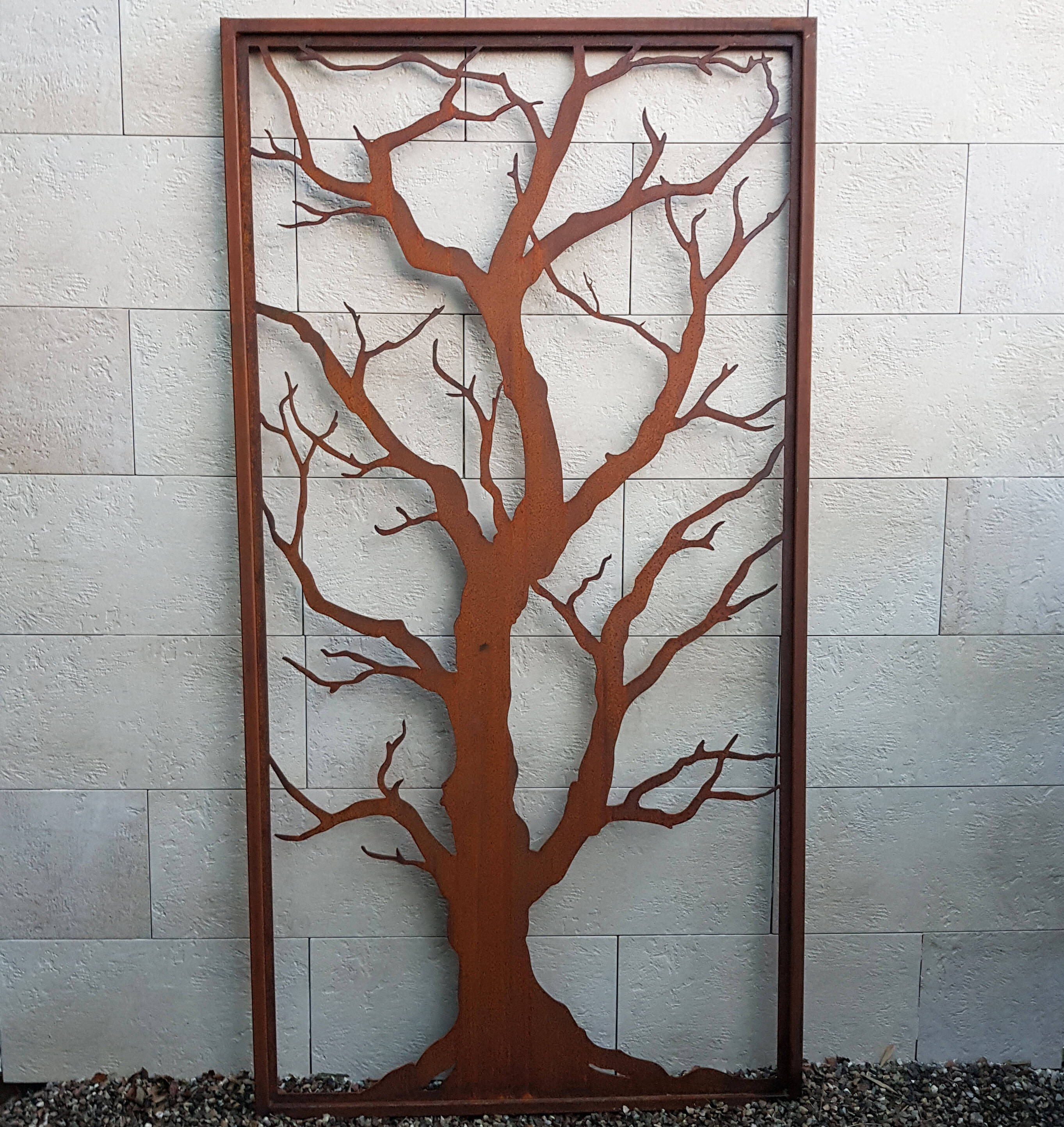 Paravent aus Rosteisen, Höhe 200cm, Baum Motiv