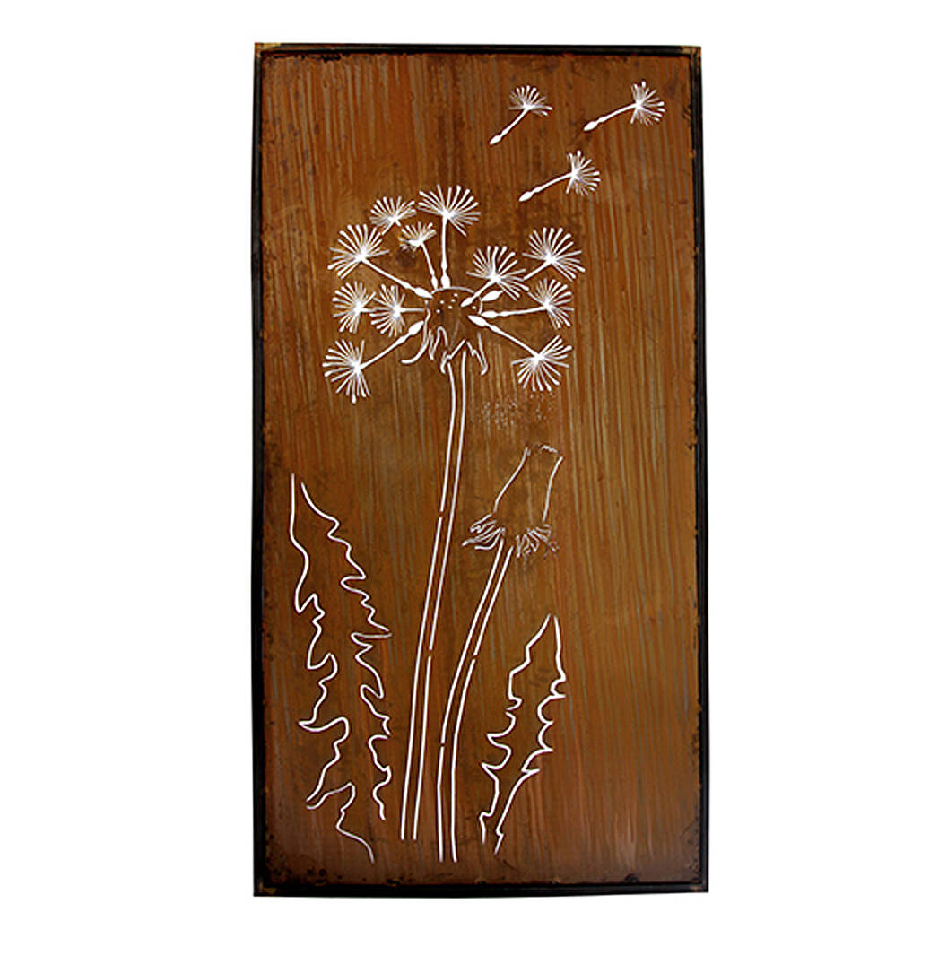 Wunderschöner Paravent aus Rostmetall, mit Pusteblumen Motiv, fein ausgeschnitten