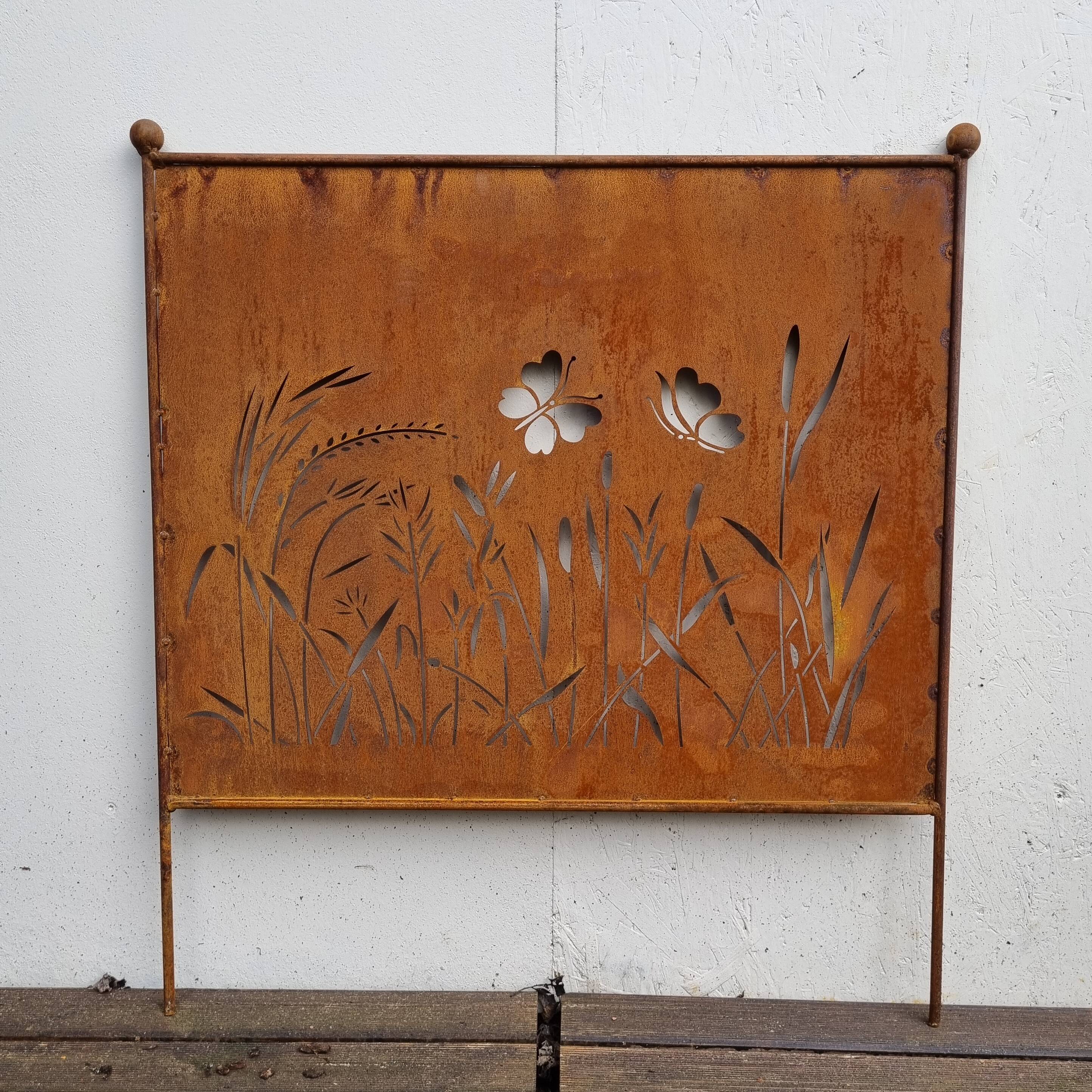 Sichtschutz aus Rosteisen, Blumen, H. 65 cm