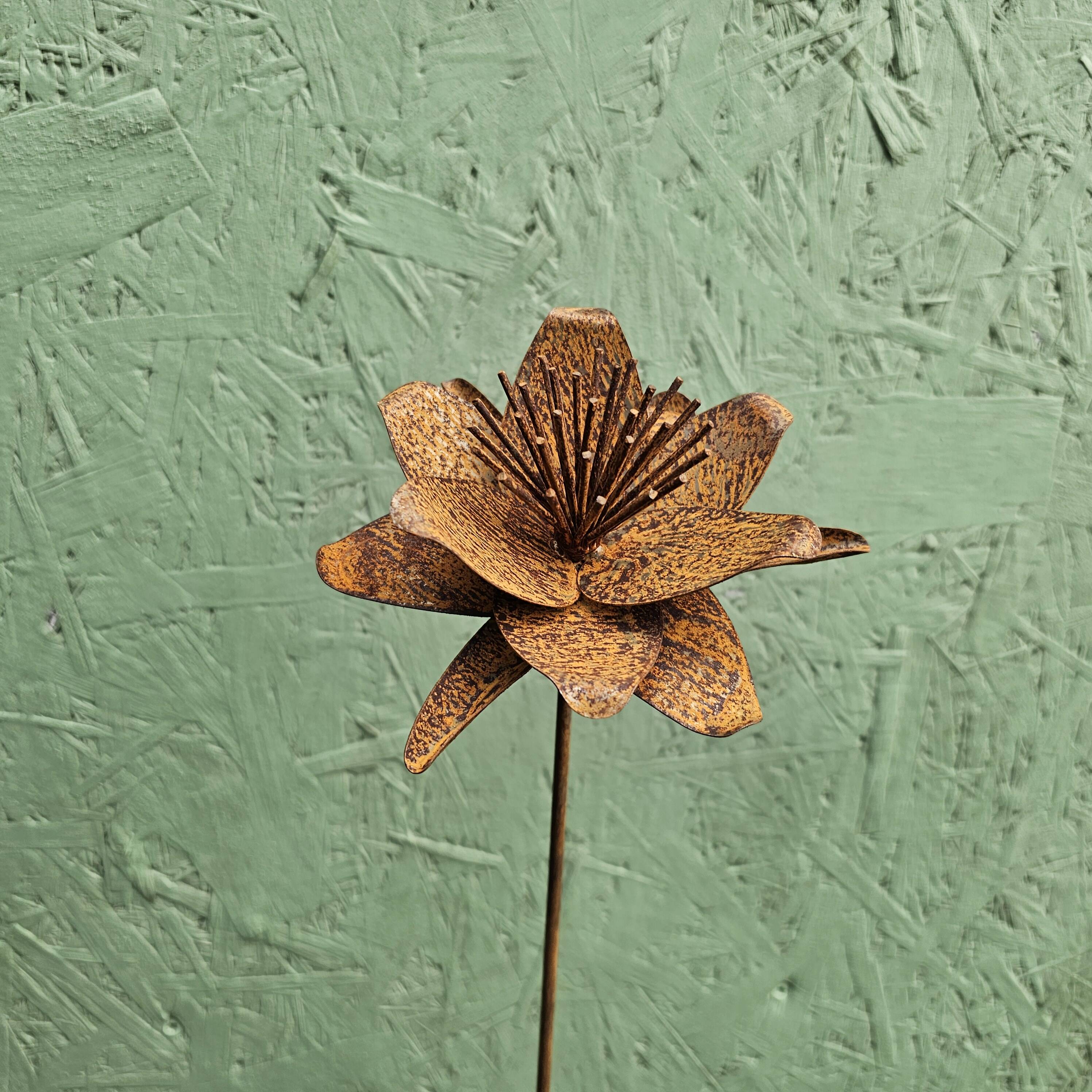Blume aus Rosteisen, Ø 15 cm, H. 105 cm