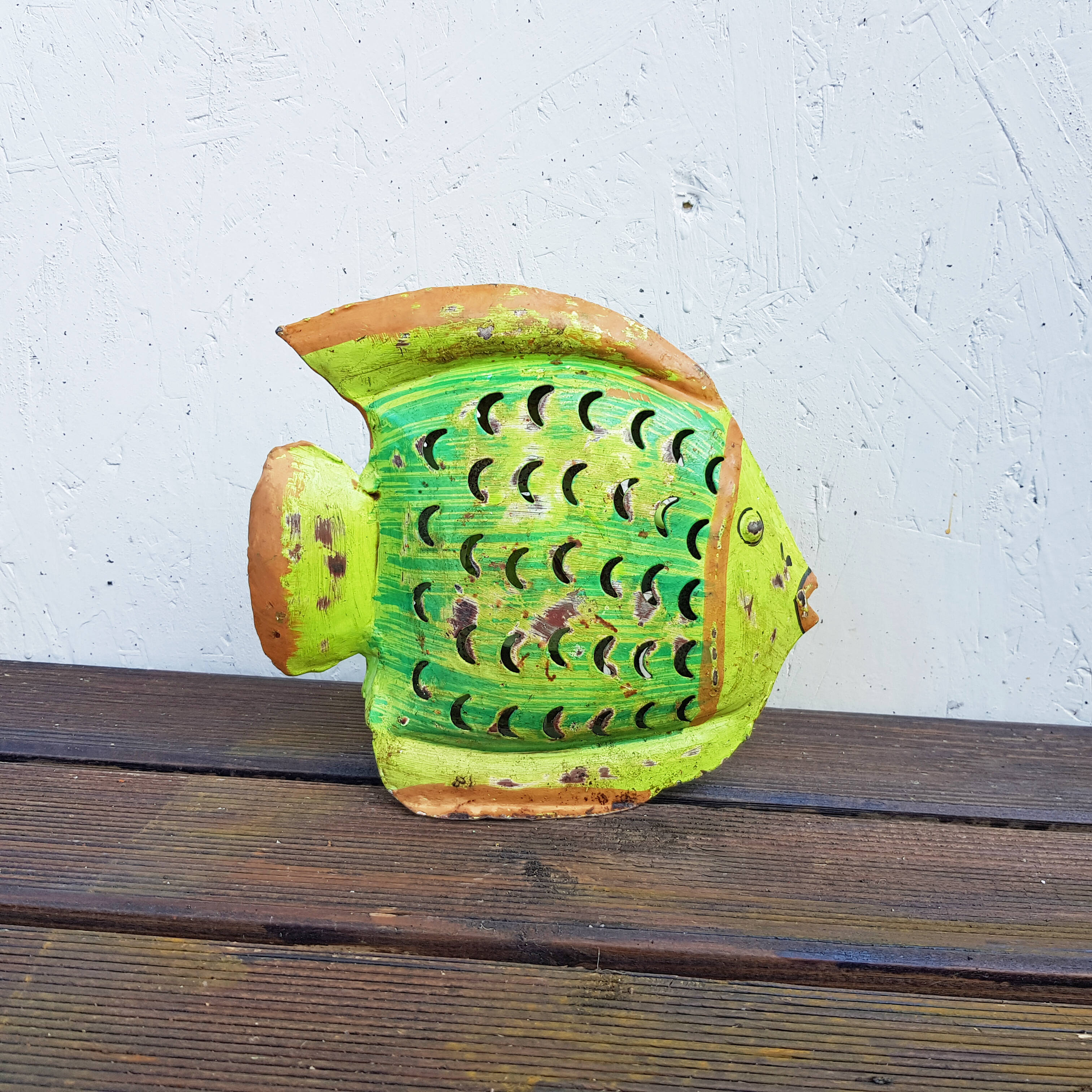 Fisch bunt bemalt aus Metall, zum Stellen, L. 21cm