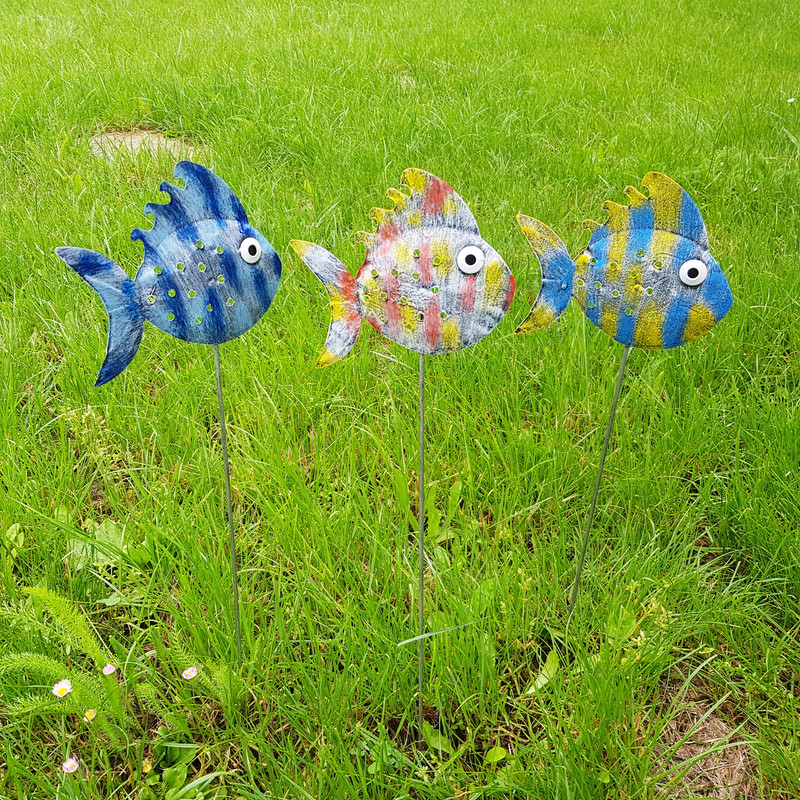 Stecker Fisch aus Metall, bemalt, H. 45cm