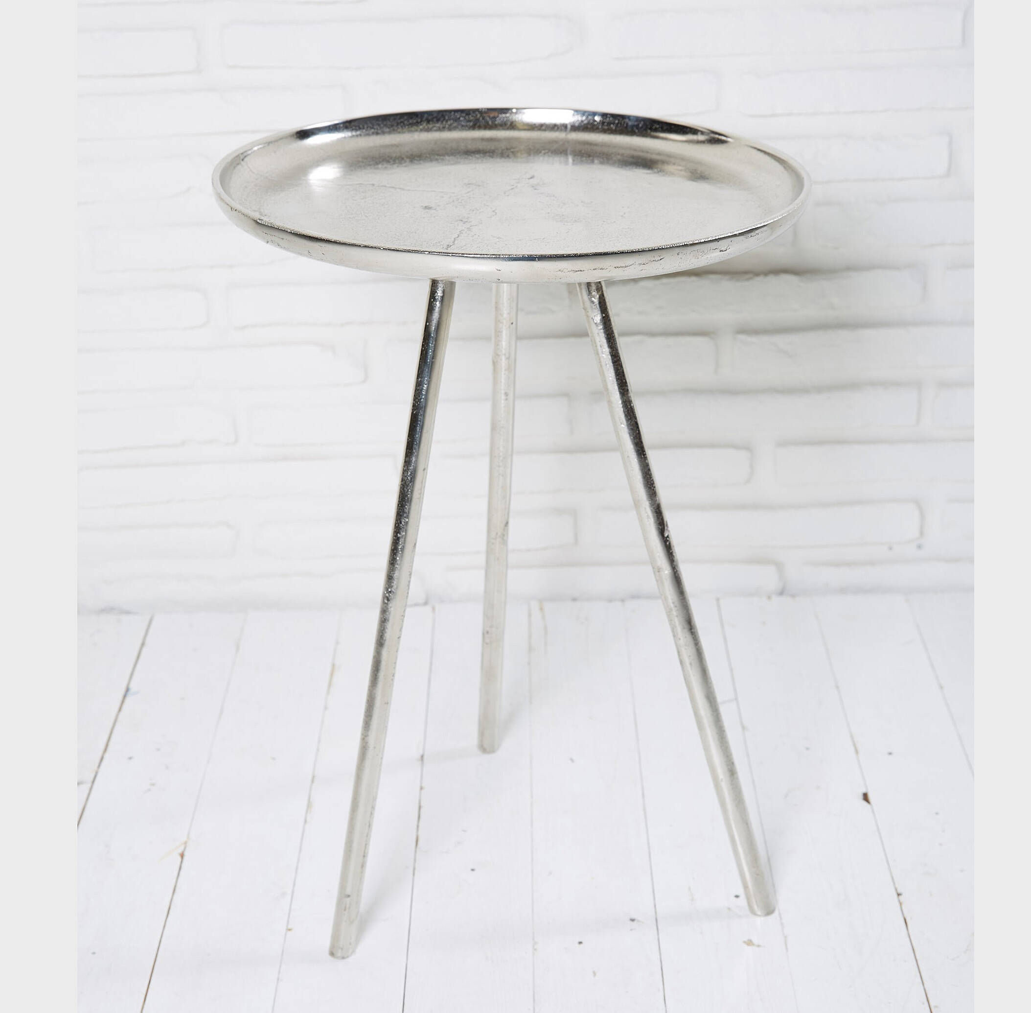3-Bein Tisch aus Metall, silber, H 58cm