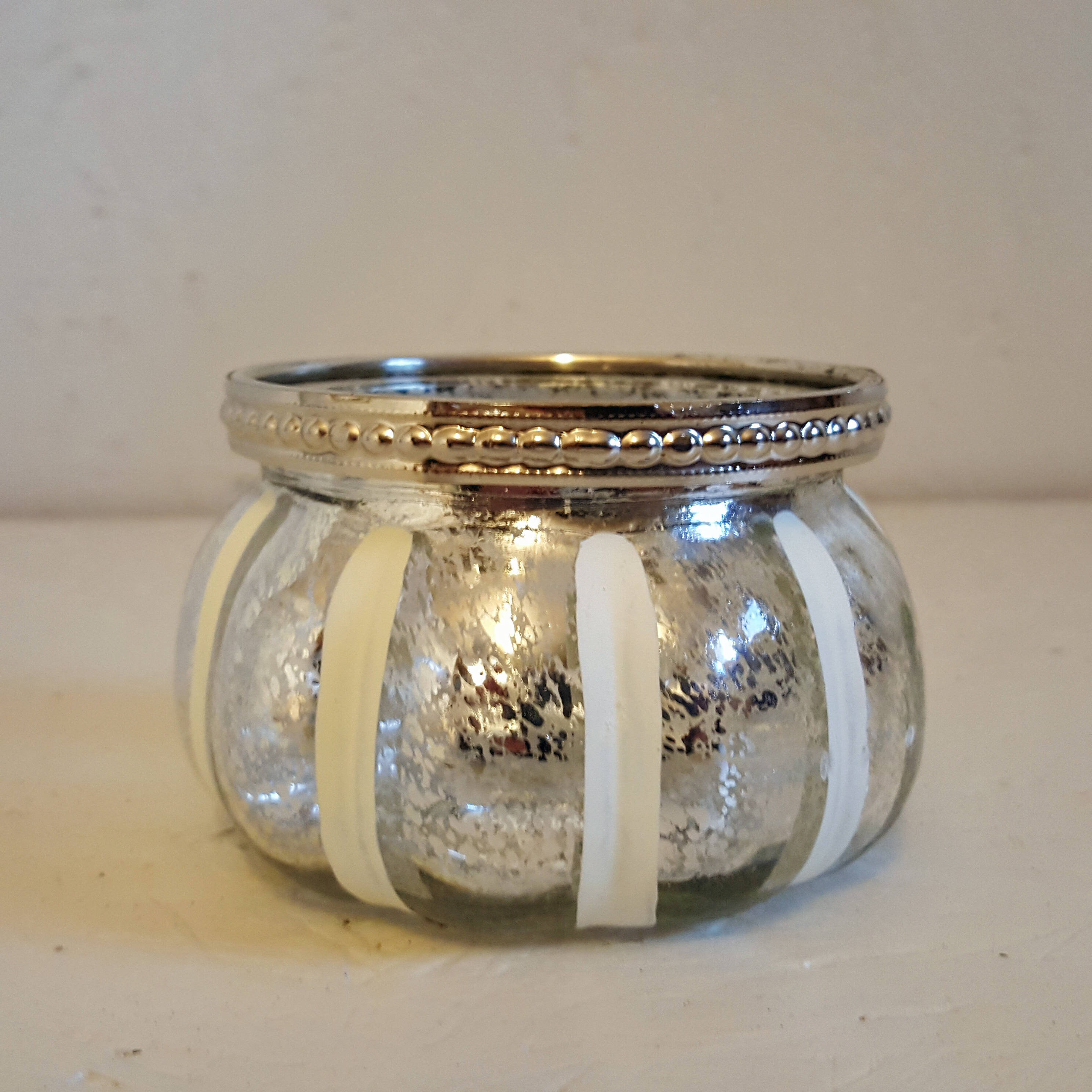 Teelichtglas, weiss-silber