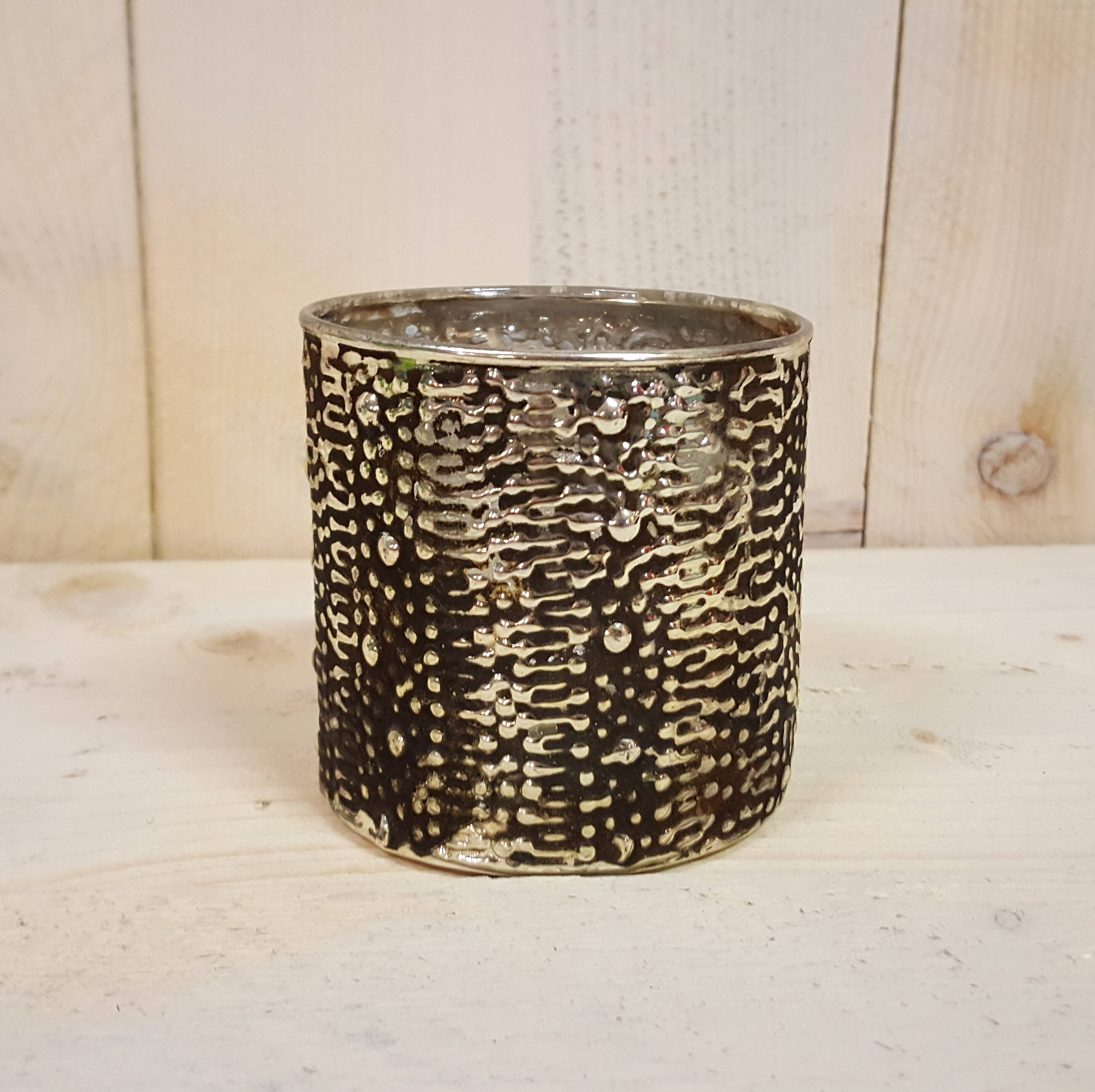 Windlicht aus Glas, silber-schwarz