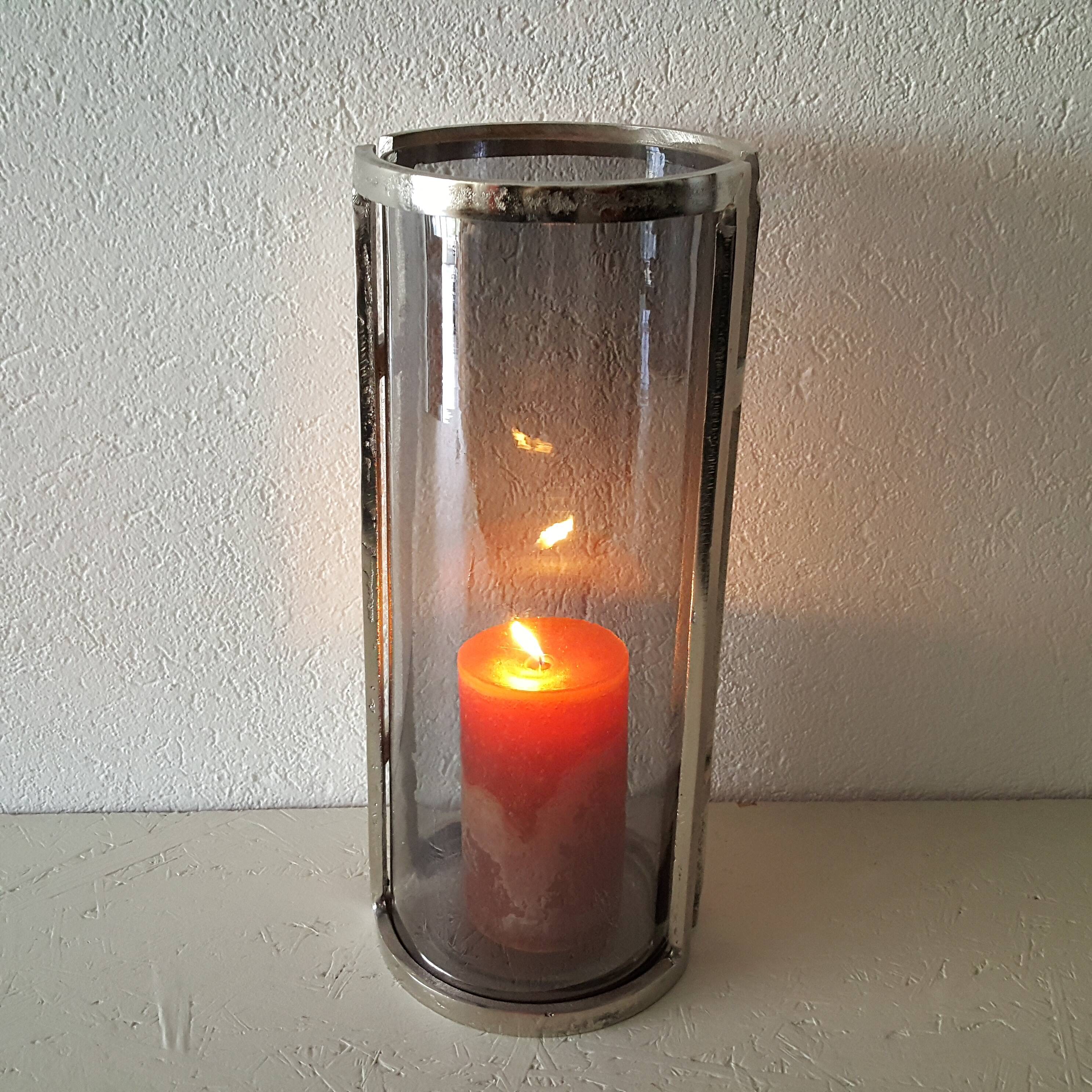 Windlicht aus Glas in einem Metall Gestell, H. 41cm