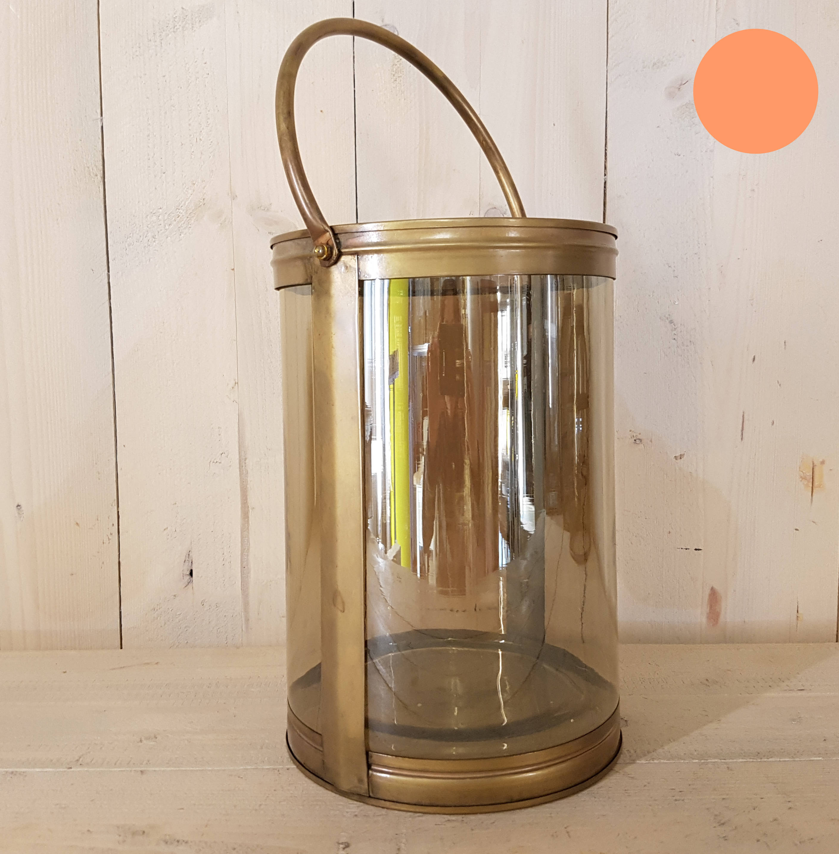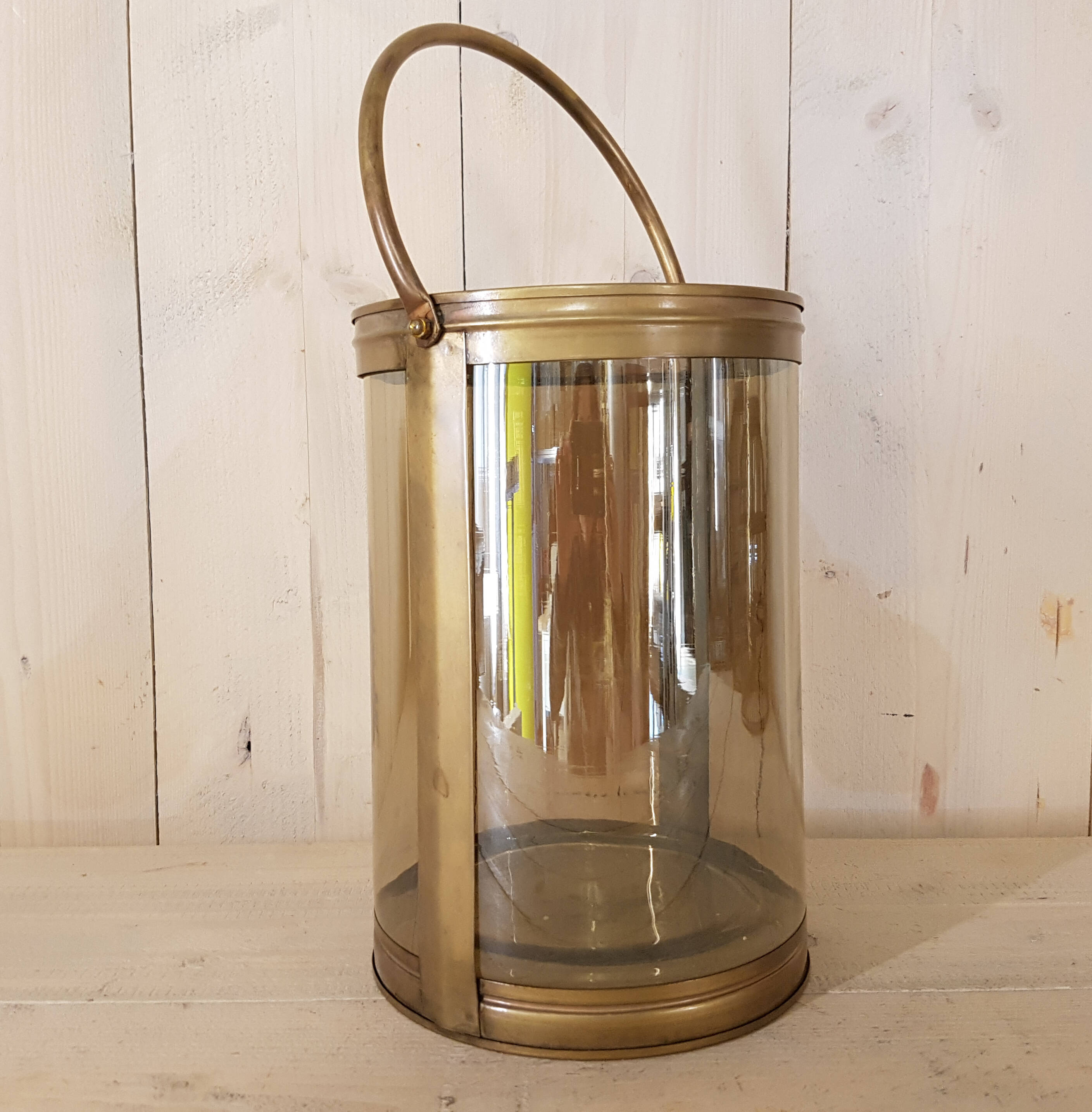 Windlicht aus Glas mit Metallumrandung