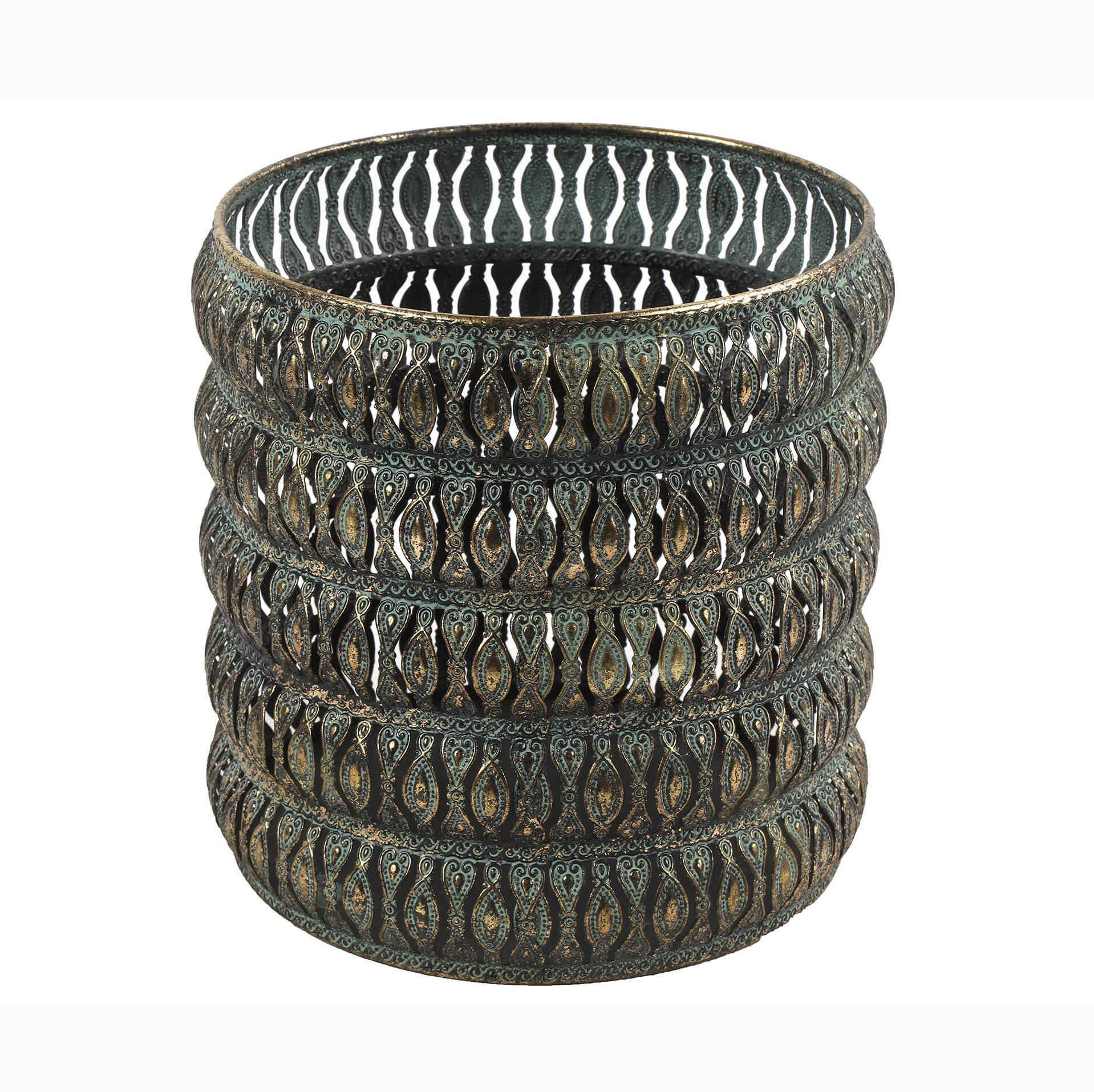 Windlicht aus Metall, grün/gold, Höhe 21cm