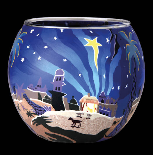 Stimmungsvolles Ambiente mit einem angezündeten Teelicht im Inneren