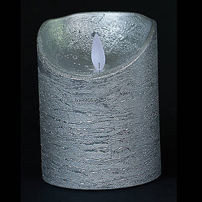 Kerze LED, Ø 7.5cm / Höhe 10cm, silber, bewegliche Flamme
