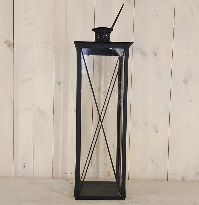 Metall Laterne quadratisch, mit Metallstreben, schwarz-braun