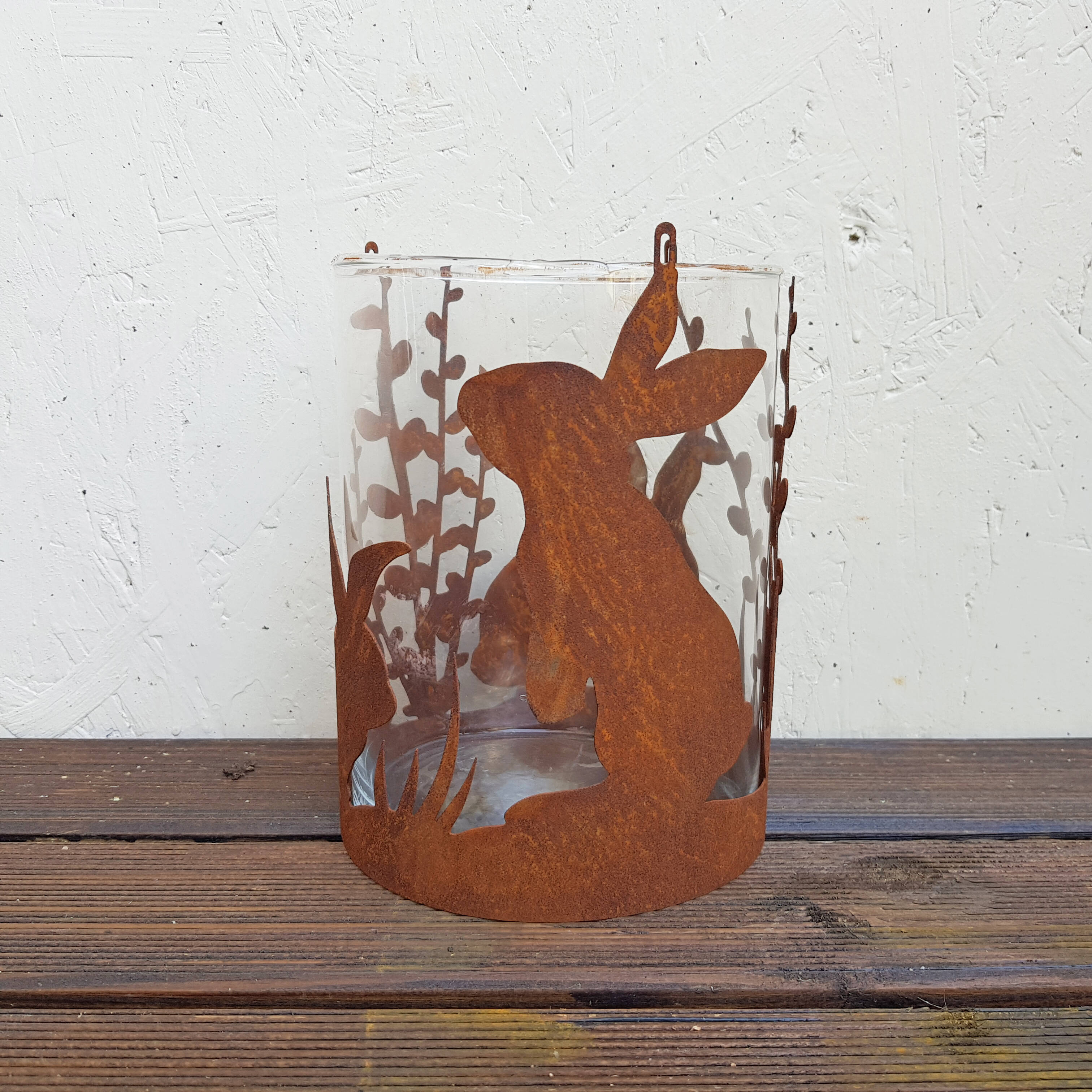 Windlicht Hasen aus Rostmetall, 15x20cm