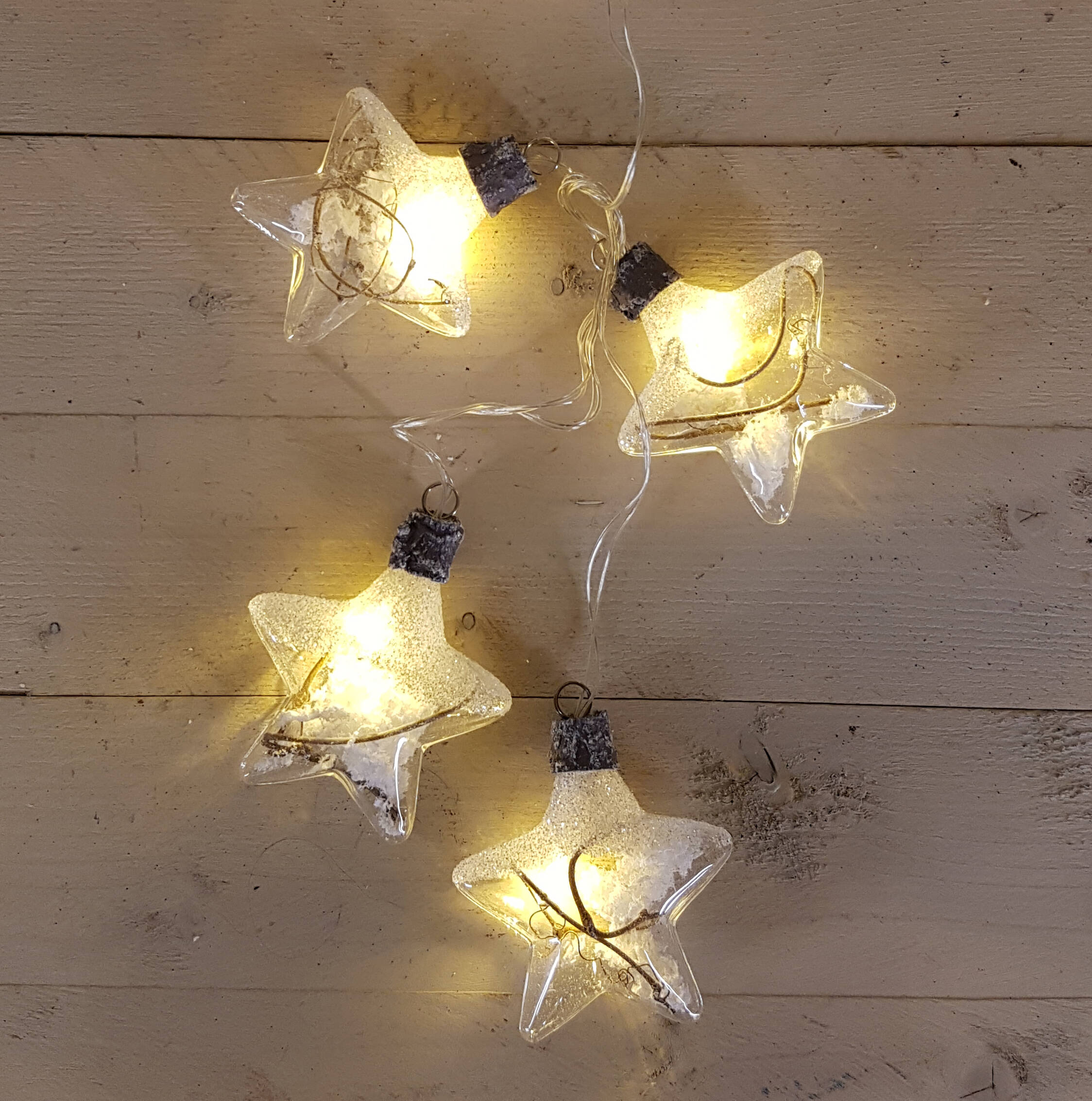 Lichterkette Sterne, 5 Sterne aus Glas mit LED Licht, Transparentes Kabel
