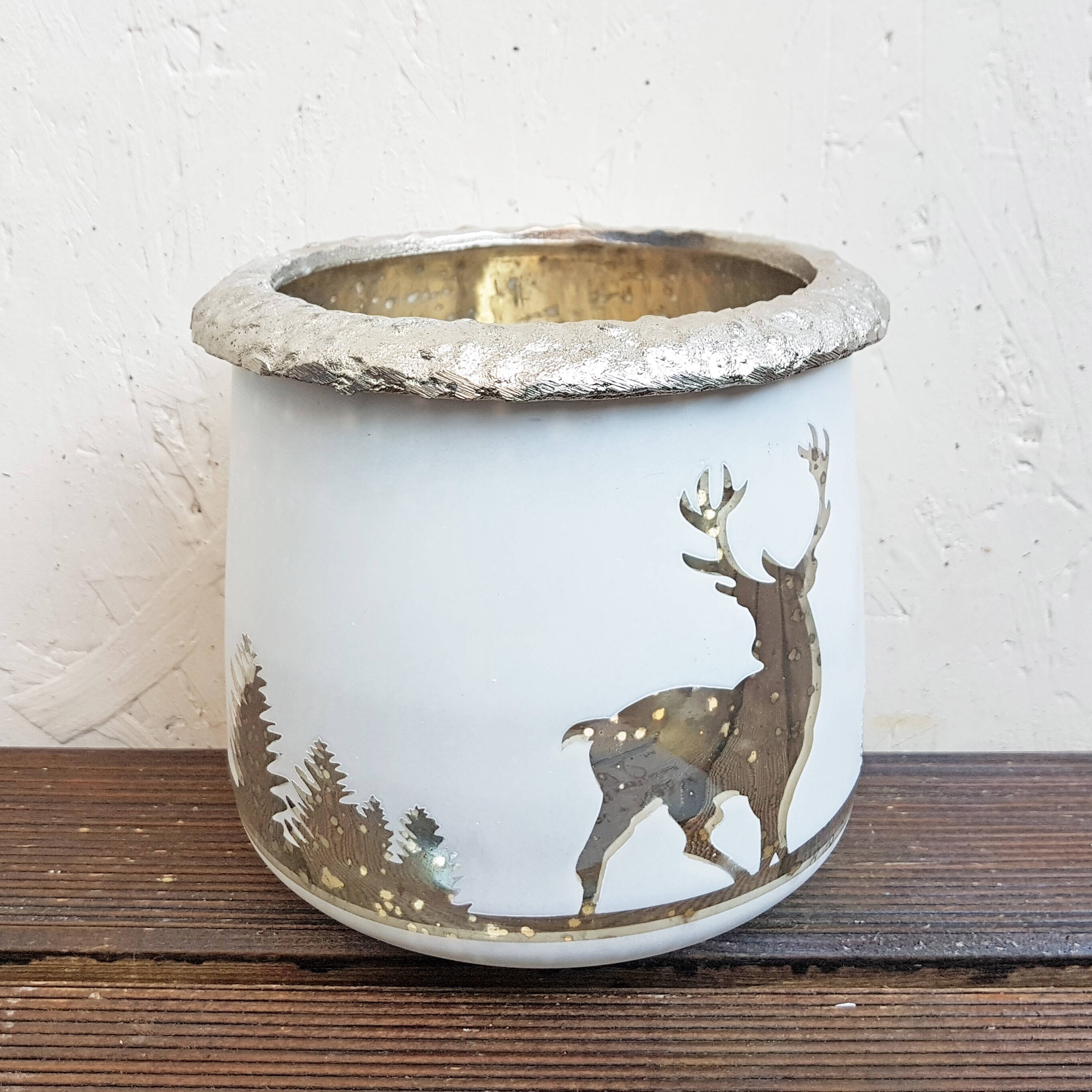 Photophore ''hiver'' en verre, H. 15cm