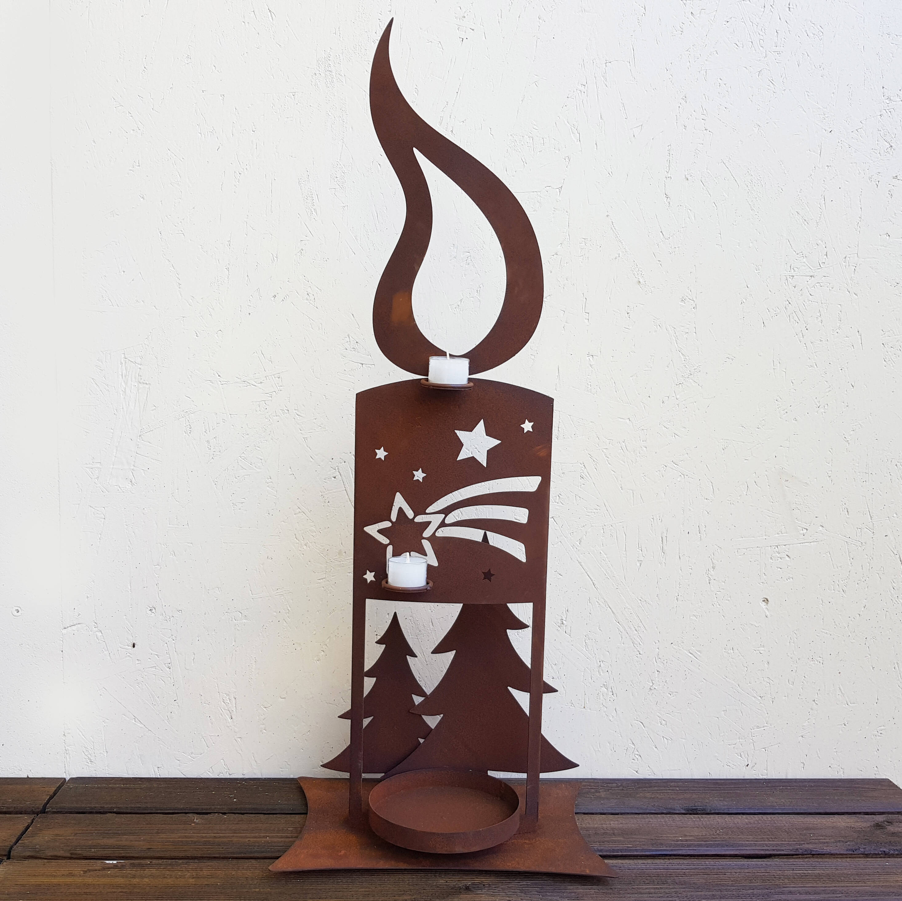Bougie Noël en fer rouillé, hauteur 80cm