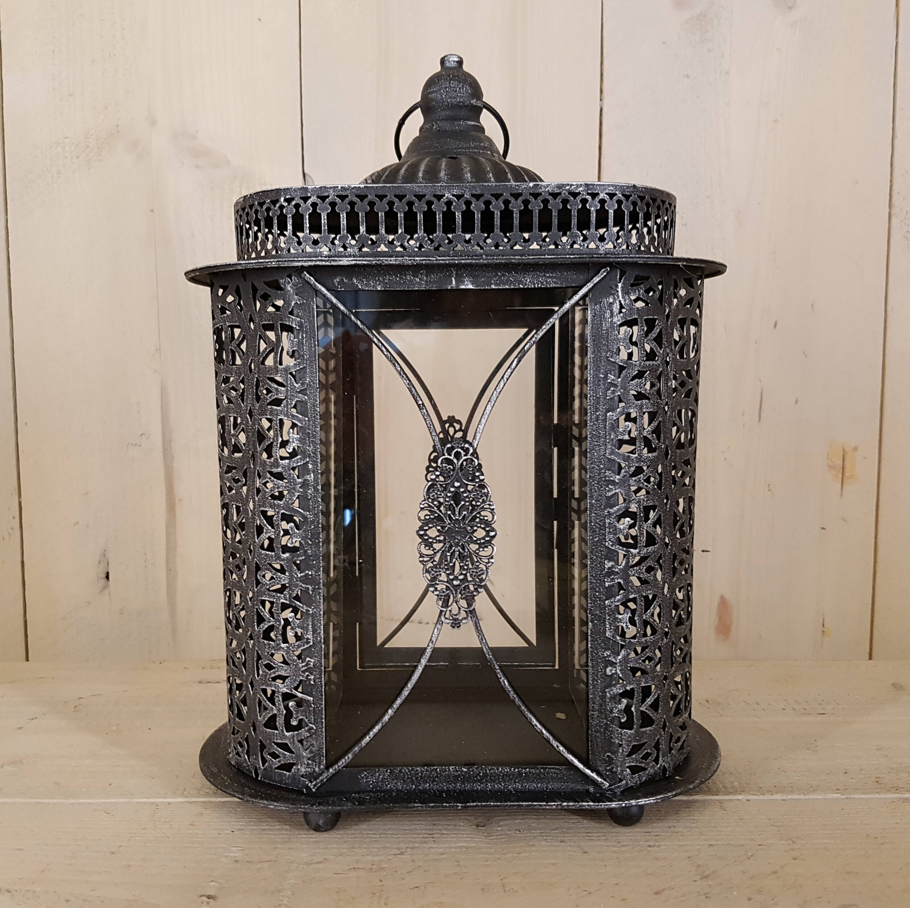 Très belle lanterne ovale, finement découpée sur les côtés, en métal, look ancien