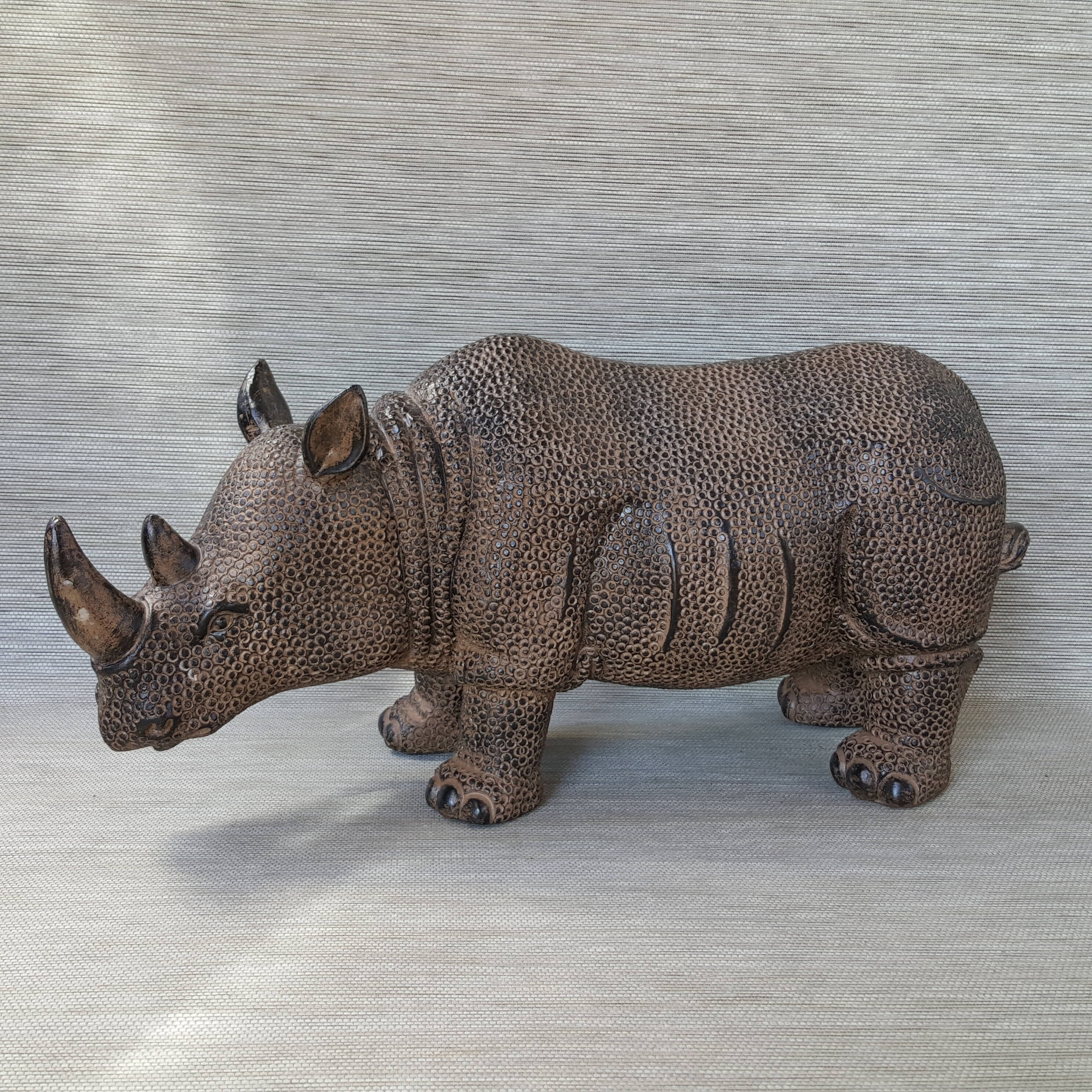 Rhynocéros en résine, magnifiquement représenté
