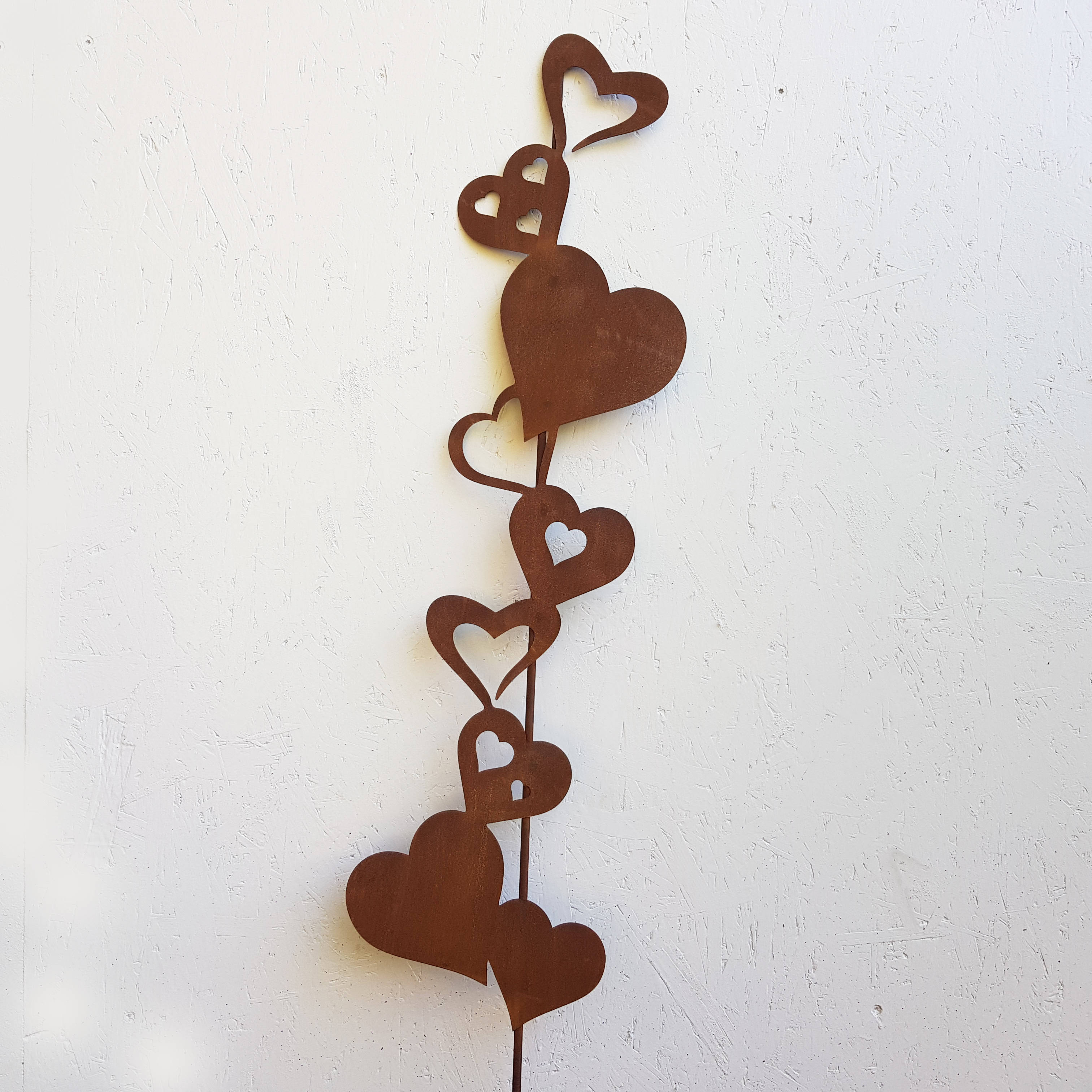 Coeurs sur tige, en fer rouillé, hauteur 120cm