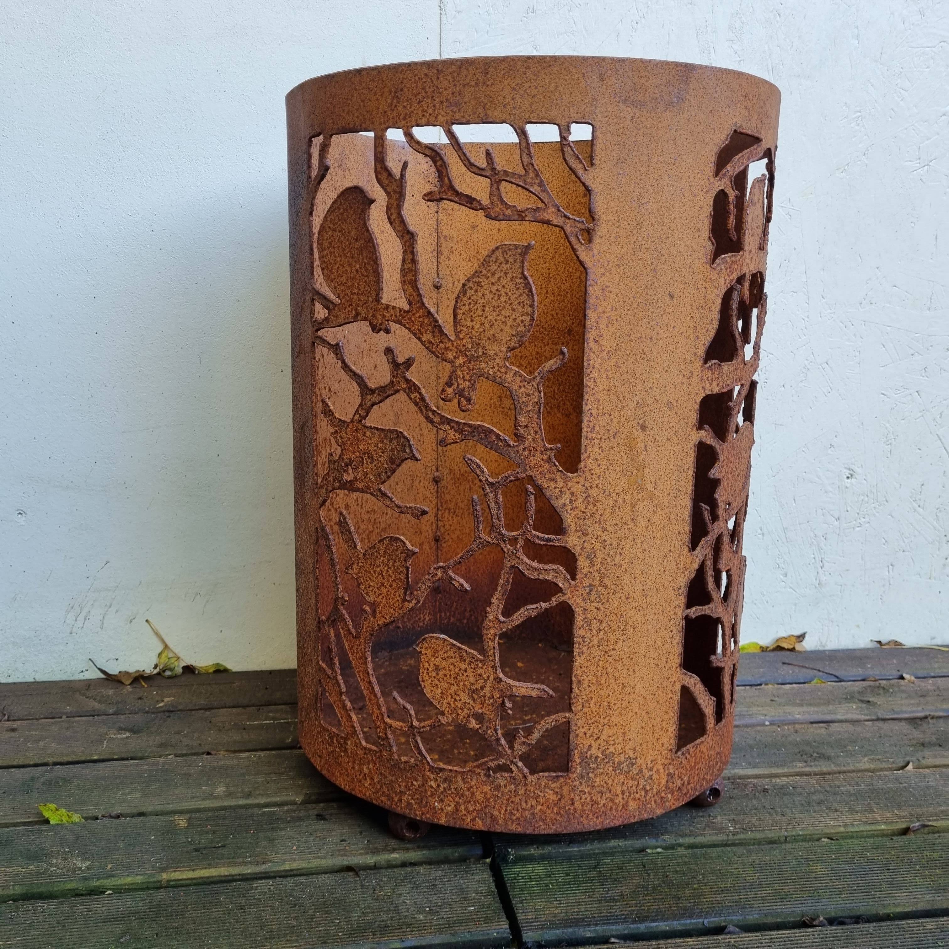 Foyer en fer rouillé, branche découpée, diamètre 40 cm