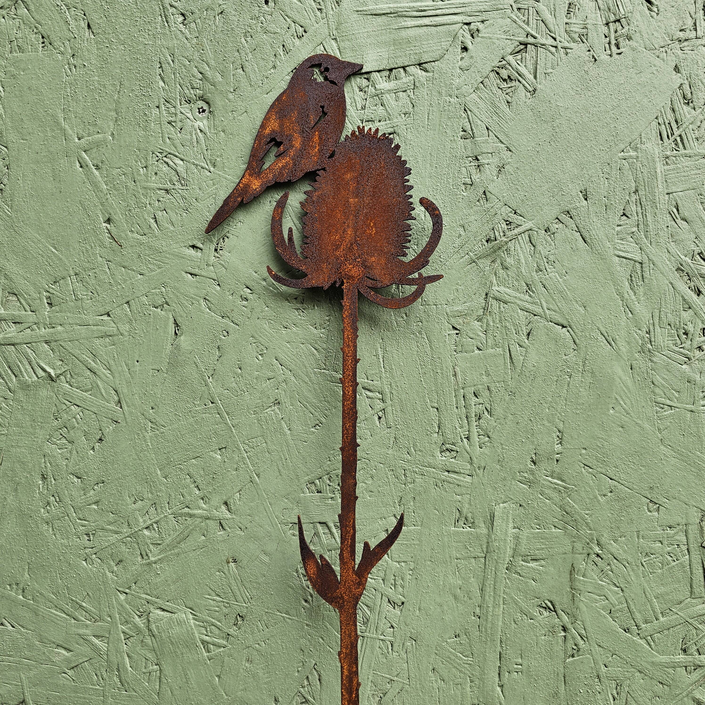 Oiseau sur plante en fer rouillé, 64 cm