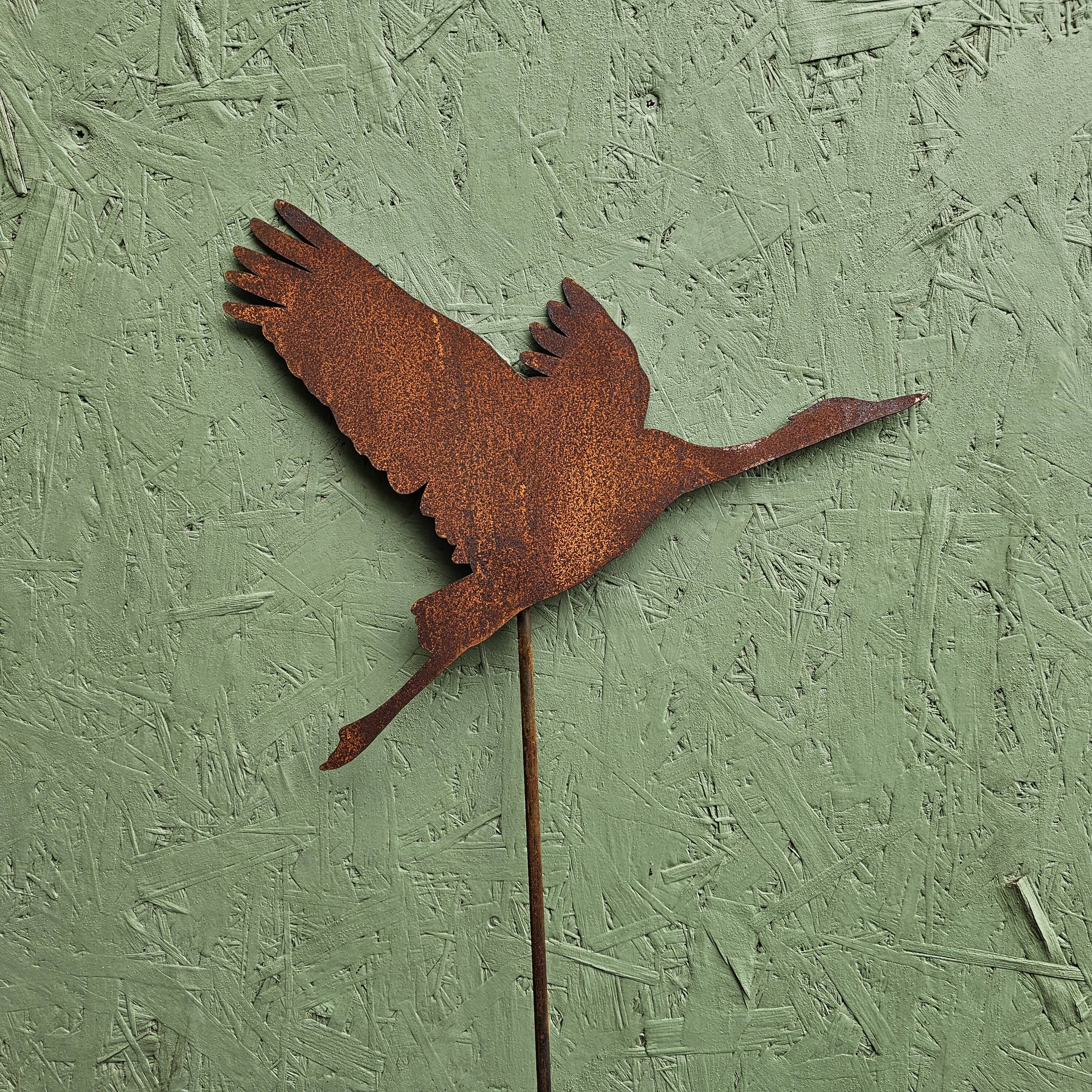 Echassier en vol, en fer rouillé, sur tige, 145 cm
