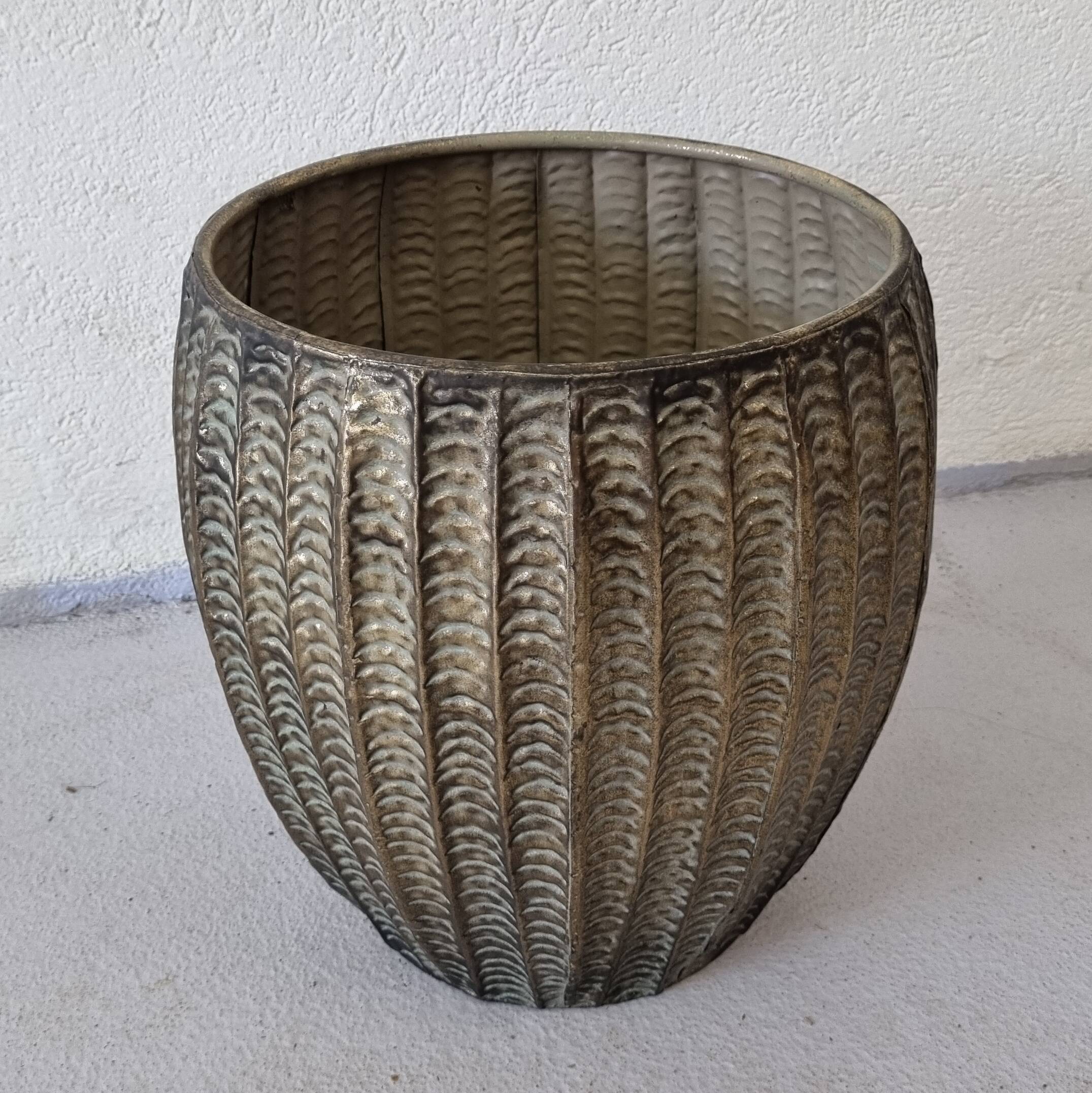 Cache-pot en métal, H. 31 cm