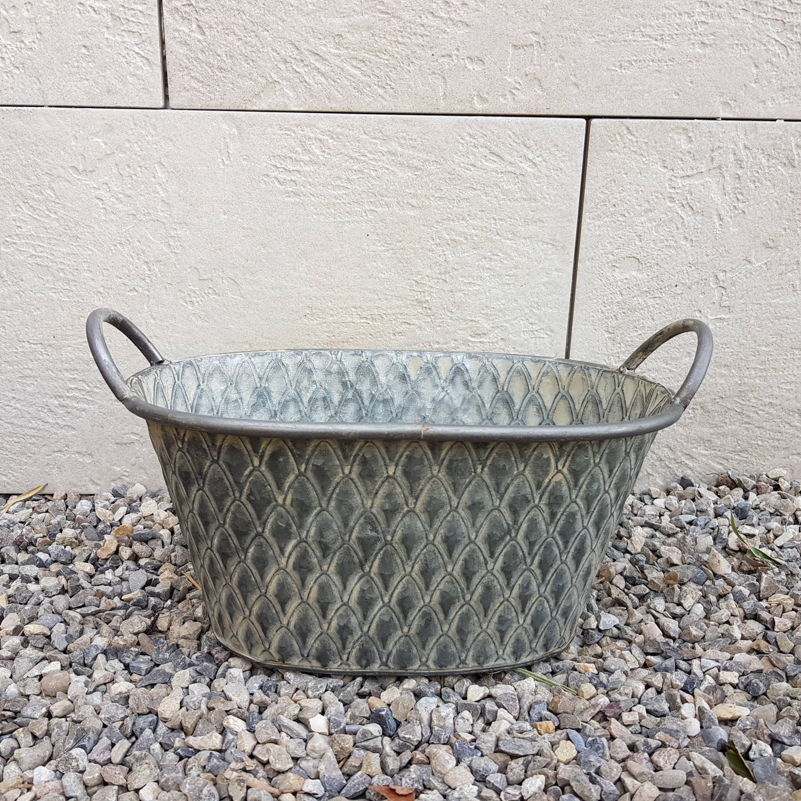 cache-pot oval, métal, avec poignée, L. 32 cm